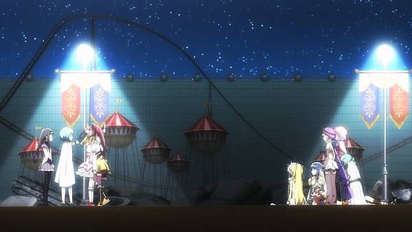 一開始在講古,麻美不在現場,曉美焰、鹿目圓、沙耶香,(麻美在上季和女主角掉下懸崖)