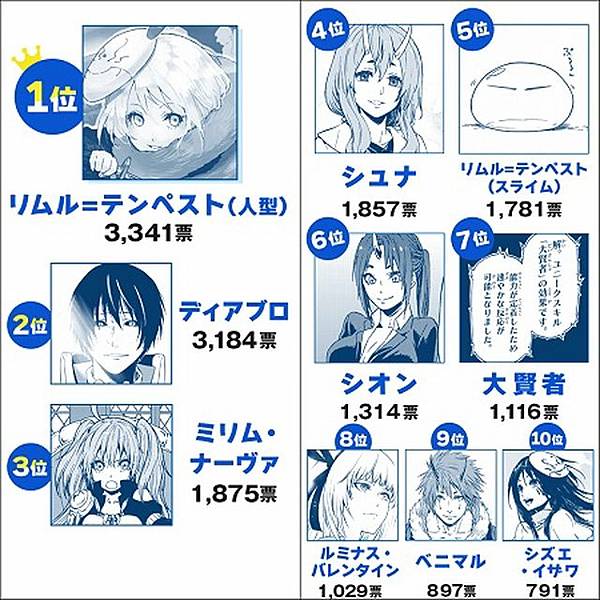 本作的人氣排名大概是這樣的:迪亞布羅(小黑)第二名、蜜莉姆第三名、朱菜第四名、紫苑(詩音)第六名、靜第十名,本作的男女角都很有特色,而且人氣票數相對平均, 我覺得蜜莉姆這類型的人設男女通吃,本作人氣高是有道理的。