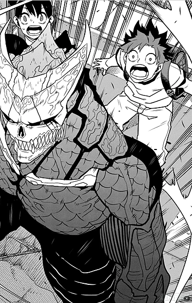 一、這故事前期搞笑與嚴肅切換的方式,主角一下很帥一下很遜炮,讓人有看到鋼鍊風格的即視感,戰鬥部份,怪獸八號VS保科副隊長大約在漫畫19、20話很精采,怪獸八號VS四之宮功的部份(漫畫33到37話)也很精采