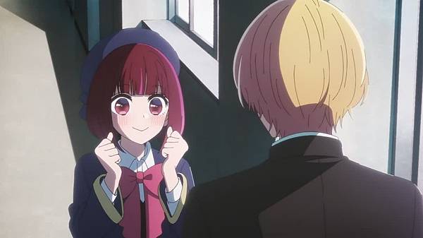 男主角趁有馬加奈不在的時候問了一下黑川赤音,二人是同齡童星,等於競爭對象,所以黑川赤音不會退讓。