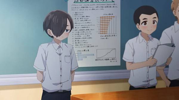 最後用成績分配,男主角就和山田同組,山田因為工作的因素比較難抽空讀書,因此是班上成績較差的一組。