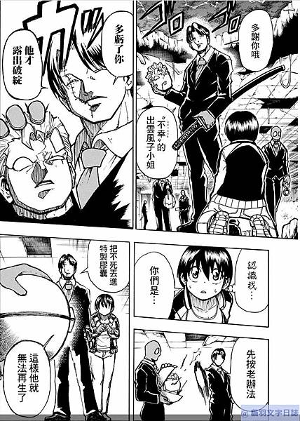 不死用他的再生能力,打倒了「不可避」,不可避死亡。