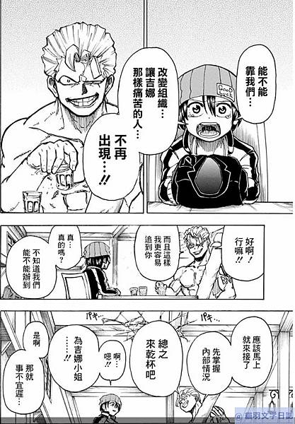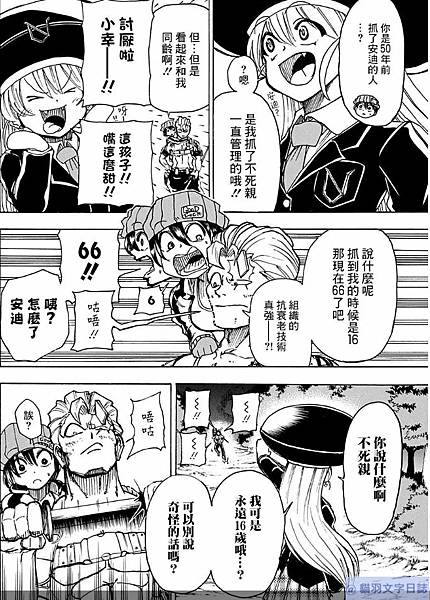 不過我看union組織好像沒吉娜說得那麼壞事做盡,好像並沒有吉娜退場不可的理由,但就是與安野雲都是因為強度太破格而退場,基本上不會再登場。我是覺得吉娜好可愛的類型,吉娜領便當就有點不想看這故事了。理由:就劇情不可愛啊。我看到有討論在詢問不死不運為何沒有大紅的原因,也許就是因為畫風與人物設定有不可愛的地方,雖然劇情確實不差,但就是有讀者對角色無愛,因此勸退了一些讀者,或許人物設定再可愛一點,比方說個性有趣的女角再多一些,也許就會比較多人看這部了。