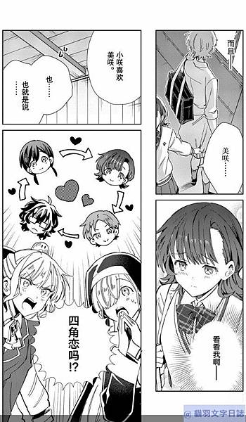 但是到了畢業時才發現,原來小咲是演出來的,目的是為了接近美咲,原來這是四角戀愛