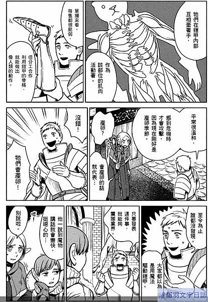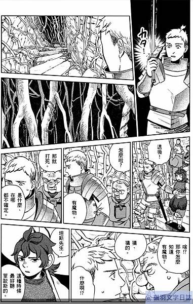 這時候萊歐斯的劍突然有反應,不知是何種魔物,原來是觸手怪把一個同伴捲走,萊歐斯當誘餌,讓先西與娜瑪莉的協助下救回受困者。眾人回到根據地,坦斯治療瑪露希爾。這話在很短的篇幅有懸疑、有人物設定、有魔物知識……是很好看的一回。