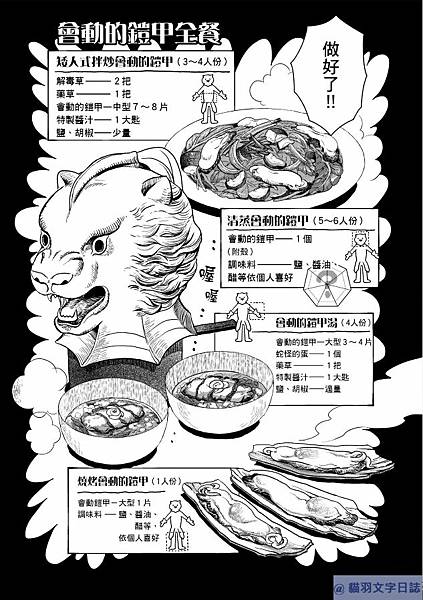後來發現是一種軟體生物操控鎧甲,於是就清蒸會動的鎧甲湯。清蒸要的電鍋打那來。三杯鎧甲。