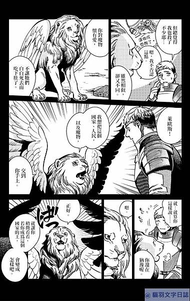 主角向其他人保證他們可以戰勝惡魔,因為他發現翼獅變得比較像人類,因而有可以戰勝他的辦法。