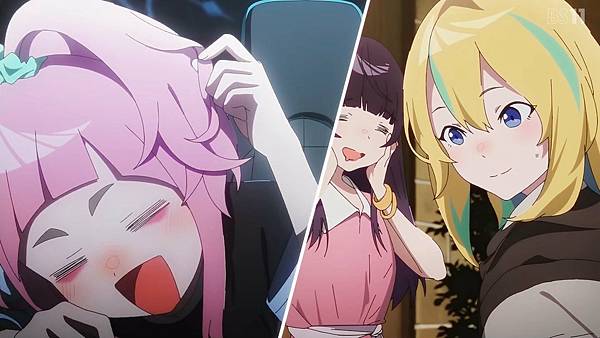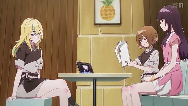本作是廣義偶像番,情節有點像孤獨搖滾,只是差別在於本作不是地下樂團,但都有描寫網紅相關情節,故事的背景在澀谷、新宿,怪不得很多熟悉場景。關於網紅的描寫與設定,這在五年前甚至是十年前是無法想像的,於是近年開始不少作品都有加入各種網紅設定。本作可以當百合向動畫來看。比較有趣的設定就是芽衣(黑長直)是花音(黃毛)的粉絲,而花音(黃毛)又是真晝(褐毛)的粉絲,動畫第二話芽衣本來想跳出來當花音的乾爹遭拒絕,這也是很有網紅概念的喬段,畢竟疫情後大家都曉得SC(super chat)是什麼意思。因此經營流量粉絲很重要,狂熱粉絲更重要啊,看看這個會作曲又可以當有錢乾爹的的芽衣吧,雖然這類型的女角人氣不一定高,但是這人設很有說服力啊。