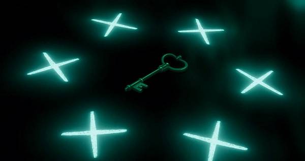 謎底出處為大野狼與七隻小狼的英文原著,當大野狼攻進羊家,七隻小羊躲在不同的地方: One sprang under the table, the second into the bed, the third into the stove, the fourth into the kitchen, the fifth into the cupboard, the sixth under the washing-bowl, and the seventh into the clock-case.一隻躲在桌下、一隻躲在床底、一隻躲在火爐,一隻躲在廚房,一隻躲在櫥櫃,一隻躲在洗臉盆,最後一隻躲在時鐘底下,因此女主角才會在找到六隻羊(六個X)後,拿著畫到大鐘底下找最後一隻羊,其實看童書就曉得謎底了,電影用畫的形式比較易懂,如果真的完全要照原作可能要照順序來,只看畫就不曉得順序了。