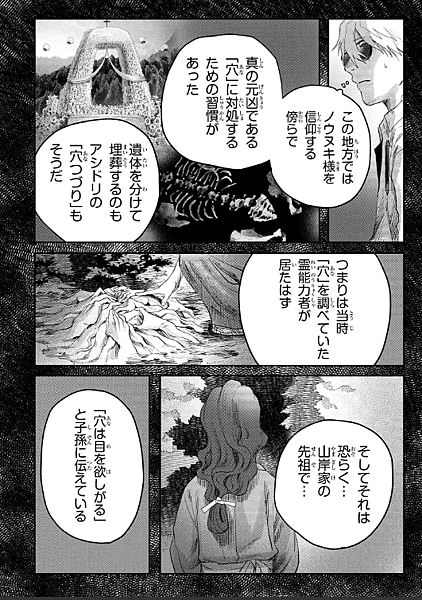 「而且,這份可怕的傳說,被山岸家一代代傳承下來……『洞會渴求眼睛』,如此告誡子孫。」