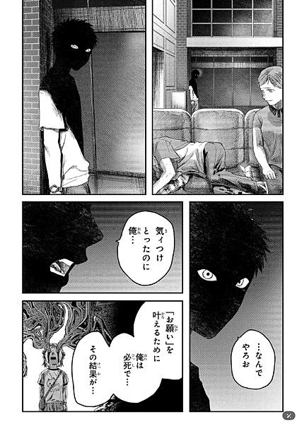 主角想起了墨鏡男的話:『「 那東西」是能實現人類願望的存在。,但不是你想像中的方式,而是帶著詛咒或扭曲的實現』